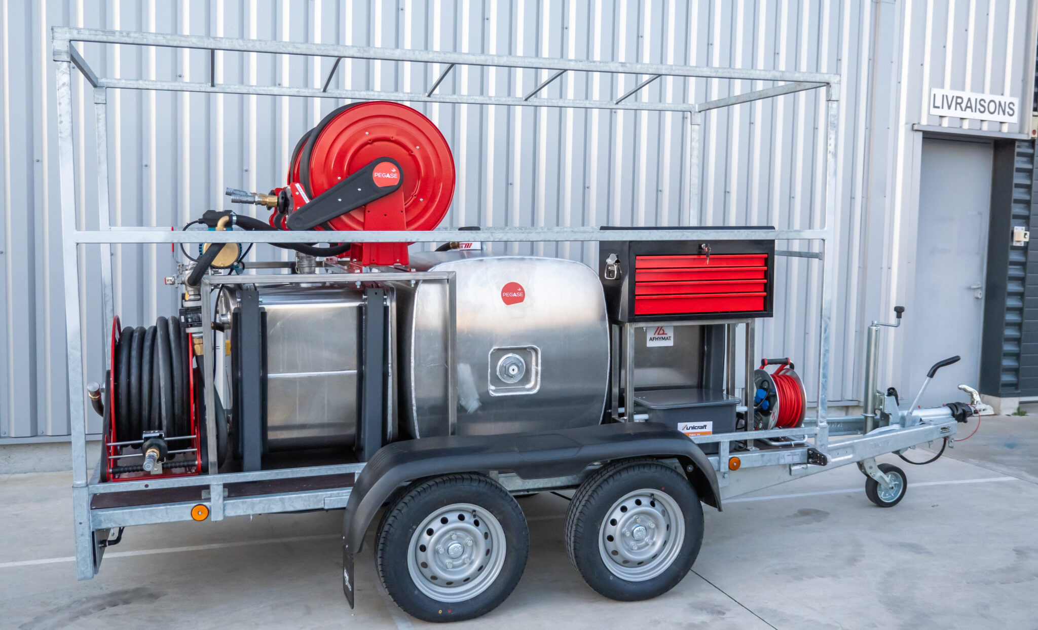 La remorque de transport et de distribution d’huile Fill’n Oil, équipée de deux cuves de 450L et 500L, est une solution mobile complète dédiée aux interventions de maintenance industrielle, pompage, vidange et lubrification sur site.